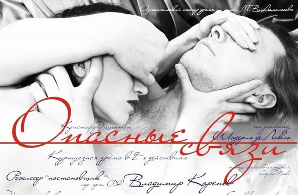 Куртуазный роман французского генерала Шодерло де Лакло носит разоблачительный характер и описывает нравы аристократического общества XVIII века в форме переписки героев. Современный английский драматург Кристофер Хэмптон написал пьесу на основе этого романа, выстроив напряженный драматический сюжет, заострив внимание на противостоянии сильных характеров. Сергей Таск перевел пьесу на русский язык, предложив свою редакцию. Известный актер Владимир Коренев совместно со своей дочерью Ириной взялся поставить спектакль на основе этого материала в Архангельском театре. Вся постановочная группа спектакля из Москвы: художник Светлана Логофет разработала сценографию и костюмы, композитор Алексей Шелыгин обработал музыку Генделя, хореограф Валерий Архипов поставил пластику. В начале спектакля слово предоставляется автору романа – самому Шодерло де Лакло: на сцене над столом склонился старик в заношенном халате и ночном колпаке, звенит третий звонок, старик поворачивается лицом к залу и с усмешкой произносит: «Пришли… Ну еще бы, скандальный автор, скандальный роман. Каждому хочется заглянуть в замочную скважину и понаблюдать за чужими грехами». А потом начинается само действие, и не с чего-либо, а с католической мессы: силуэт креста, церковные песнопения, священник на возвышении, герои спектакля – в качестве прихожан храма. Появляется виконт де Вальмон, подходит к молящимся, берет за руку госпожу де Турвель, и они, застыв на некоторое время, глядят друг на друга, остальные персонажи покидают сцену. В таком своеобразном прологе дается намек на дальнейшее развитие действия: противопоставление порока и добродетели, хищника и жертвы, опасные связи, что говорить. В центре повествования – циничная игра с душами и судьбами людей, предпринятая безжалостным охотником за женскими сердцами виконтом де Вальмонтом коварной, мстительной обольстительницей маркизой де Мертей. Они друг друга стоят – сильные, умные, жестокие. Их дружба-соперничество несет немало зла окружающим, но в конце концов перерастает во вражду, которая приводит к трагедии. Центральным элементом декорации становится огромная кровать, которая то торжественно вывозится на середину сцены, то задвигается за специальные ворота. Именно кровать является главным местом действия – все-таки это куртуазная драма: соблазнение, плетение интриг, любовные игры, сцены ревности, да мало ли чего еще требует этот жанр. Интрига строится на пустом месте. Маркиза, чтобы отомстить бывшему любовнику, просит Виконта соблазнить его невесту Сесиль Воланж, чтобы высмеять обидчика в свете. Виконт соглашается, однако параллельно с этим мечтает завоевать госпожу де Турвель, хранящую верность мужу, и по-настоящему влюбляется в нее, однако вынужден с ней расстаться. В довершение любовного клубка маркиза соблазняет возлюбленного Сесиль – шевалье Дансени. Интриги раскрываются, дело доходит до дуэли, на которой Дансени убивает Вальмона. Но письма, компрометирующие маркизу, становятся всеобщим достоянием, поэтому получается нешуточный скандал в свете. Вальмон – в могиле, госпожа Турвель, Сесиль и Дансени – в монастыре, маркиза обезображена болезнью и отвергнута светом.