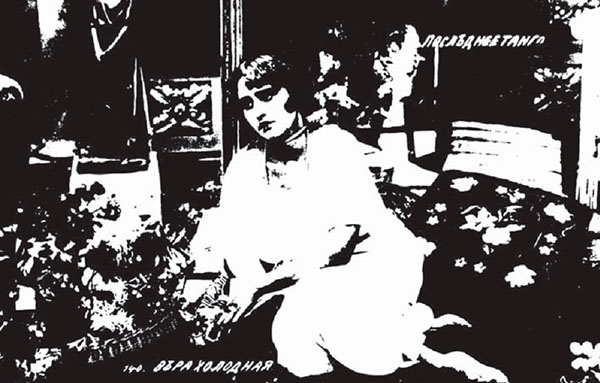 Вера Холодная на открытках, в жизни и в ролях: фильмы Цыганка Аза (не сохранился); У камина; Молчи, грусть, молчи (Сказка любви дорогой); Позабудь про камин – в нем погасли огни