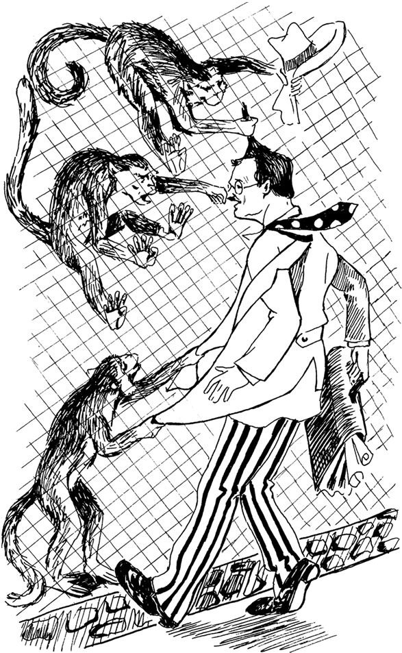 Очень интересный случай был в зоологическом саду. Один человек стал дразнить обезьянок, которые сидели в клетке. Он нарочно вытащил из кармана конфетку и протянул её одной обезьянке. Та хотела взять, а человек ей не дал и снова спрятал конфетку. Потом он опять протянул конфетку и опять не дал. Да ещё вдобавок довольно сильно ударил обезьянку по лапке. Вот обезьянка рассердилась – зачем её ударили. Она высунула лапку из клетки и в один момент схватила шапку с головы этого человека. И начала эту шапку мять, топтать и зубами рвать. Вот человек стал кричать и звать сторожа. А в этот момент другая обезьянка схватила человека сзади за пиджак и не выпускает. Тут человек поднял ужасный крик. Во-первых, он испугался, во-вторых, ему жалко шапку, а в-третьих, он боялся, что обезьяна разорвёт его пиджак. А в-четвёртых, ему надо было идти обедать, а тут его не пускают. Вот он стал кричать, а третья обезьянка протянула свою мохнатую лапку из клетки и стала хватать его за волосы и за нос.