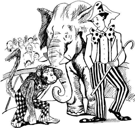 – Теперь ты видишь перед собой четырёх маленьких цыплят, петуха и страуса. Подсчитай в своём уме, сколько тут их всего. И каждый ребёнок, взглянув на хвостик, может сразу понять, сколько тут птиц. Потом клоун говорит: – Ну-ка, Жако, сосчитай, сколько тут видишь птиц и зверей. И наша умненькая обезьянка показывает своим хвостиком то, что надо. – А сколько тут мышей? – спрашивает клоун. А мышей тут было так много, что наша обезьянка даже призадумалась. Потом сосчитала и видит, что её хвостик что-то не сгибается для такой большой цифры. И тогда она зовёт другую обезьянку. Ах, кажется, они не соврали! Наконец клоун говорит: