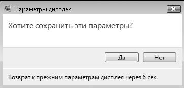 При первом применении новых параметров экрана обычно появляется предупреждение, показанное на рис. 2.28. Система дает вам 15 секунд для подтверждения изменений, а если вы этого не сделаете, то автоматически будут возвращены прежние параметры. Эта функция предохраняет от ошибочной установки неправильных параметров.