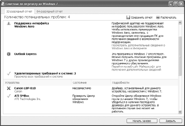 Рис. 2.2. Отчет программы Советник по переходу на Windows 7