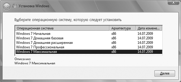 Рис. 2.5. Выбор устанавливаемой версии Windows 7
