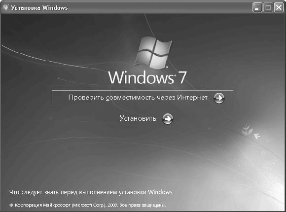 Рис. 2.9. Окно приветствия программы установки Windows 7