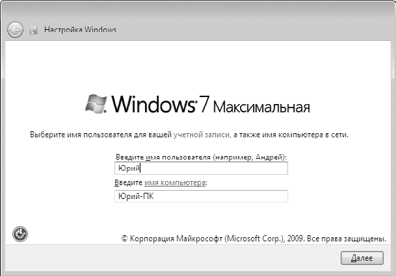 Рис. 2.12. Ввод имени пользователя и компьютера