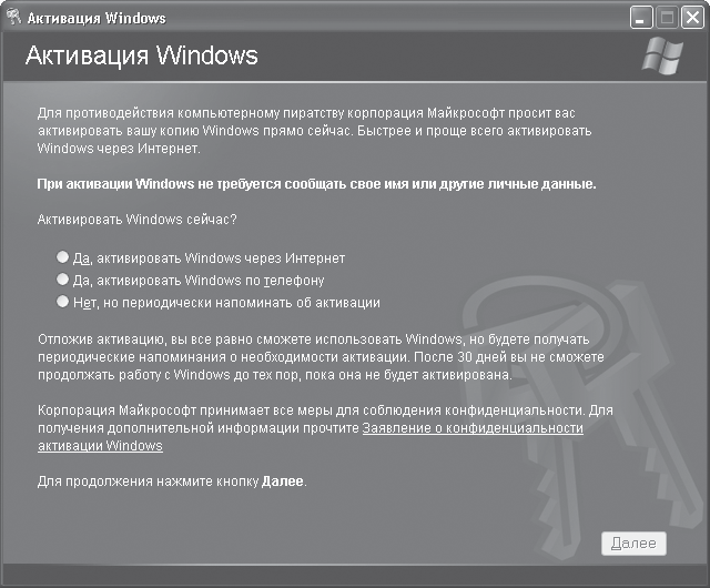 Как уже отмечалось, без активации операционная система Windows XP будет работать всего 30 дней, поэтому не забудьте вовремя активировать ее.