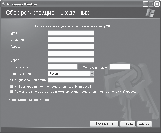 Рис. 1.24. Анкета с данными, необходимыми для регистрации