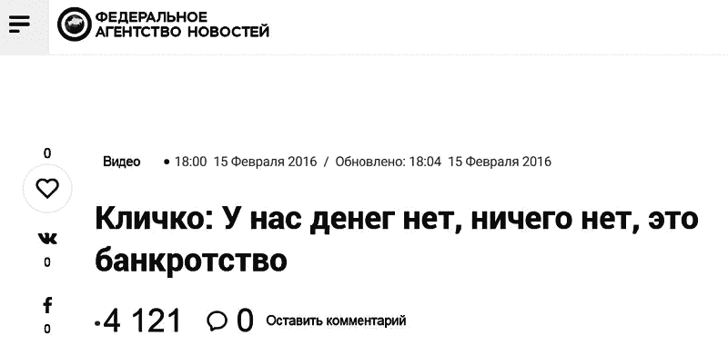 – Есть большая проблема в Киеве. Но про нее почти не говорят, власти скрывают, Порошенко лжет.