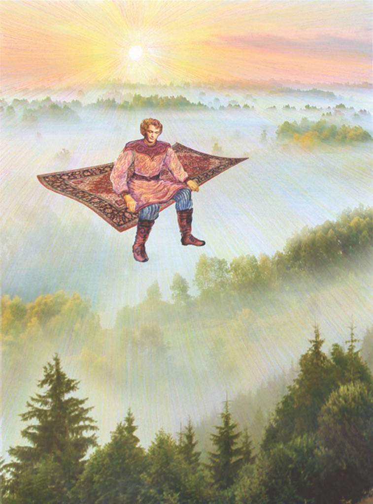Поблагодарил Иванушка хозяйку за науку, за дары Божии, сел на ковёр-самолёт – и взлетел.