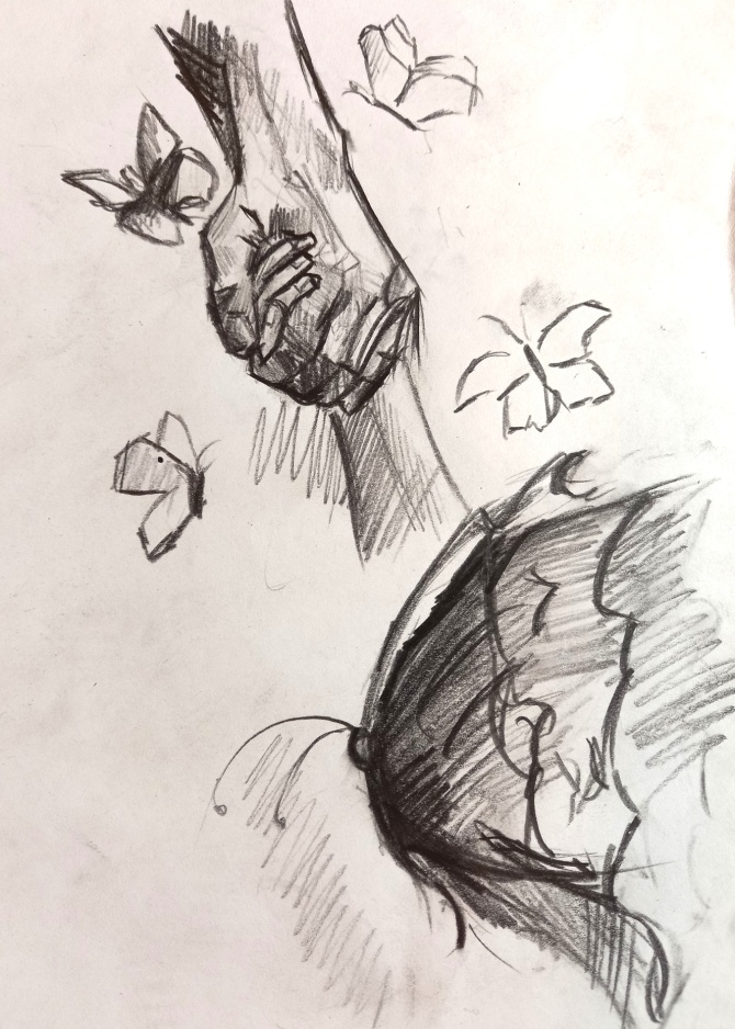 – Я с ними просто разговариваю, – улыбнулся мужчина. – Смотри, – чародей нашёл взглядом бабочку из огромного облака её сородичей, и она села ему на руку. Он шепнул что-то, насекомое тут же запорхало своими крылышками и улетело.