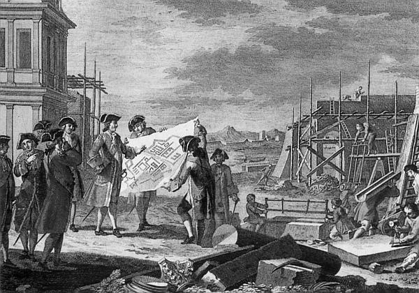 В Россию чередой потянулись вереницы талантливых заморских зодчих, таких как Доменико Трезини из Швейцарии, Георги Иоганн Матарнови из Германии, Николо Минетти из Италии, фон Звичи из Голландии и многие другие. В 1716 году в Петербург приехал из Парижа зодчий Жан-Батист-Александр Леблон, ставший любимцем Петра I и оставивший весьма заметный след в новой русской столице своими работами.