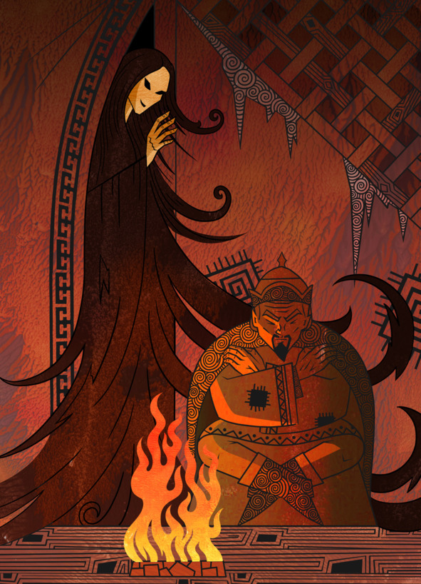 Раз в ночи, когда сгустилась тьма и разыгралась метель, в юрту одного хана пришел нежданный гость. Тонкими были черты лица его, глаза ― чернее ночи, а одежды, несмотря на холод, были из легчайшего шелка. Хан сразу понял, что перед ним суудер-эдзен.