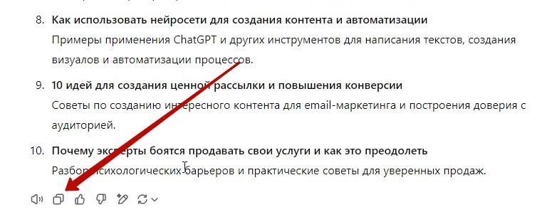 – скопировать готовый ответ нейросети для дальнейшего использования – для этого используйте кнопку Копировать.
