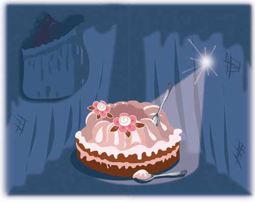 Торт появился: большой-пребольшой, весь в кремовых розах. И ложка сбоку воткнута – ешь не хочу!