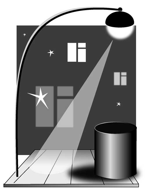 Обычный городской двор. Вечер, светит фонарь.