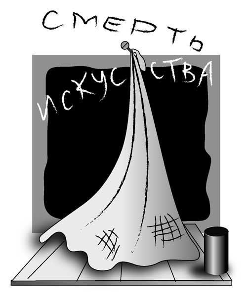 Эта скульптурная инсталляция называется «Смерть искусства». Её автор, художник Аристотель Запредельных, удостоен Гран-при Всемирной интернет-выставки «Искусство, которого нет». Давайте, дети, постоим молча и постараемся постичь глубокую философскую мысль автора.