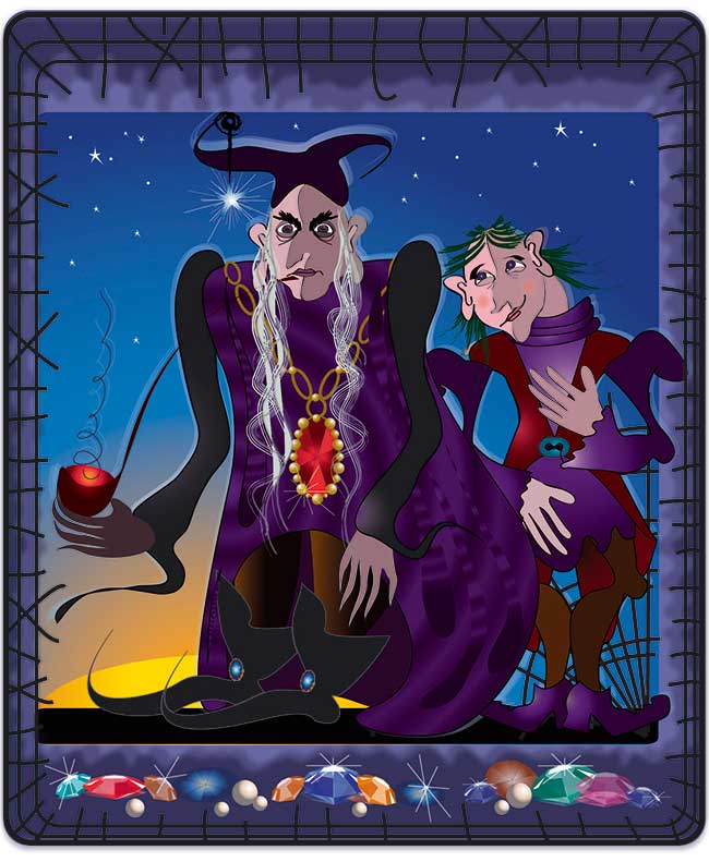 – Я не верю ни одному его слову, – шепнул своему помощнику колдун, – ни единому! Этот уродец что-то от нас скрывает. Подлей-ка нынче ему в похлёбку сонного зелья и обыщи хорошенько.