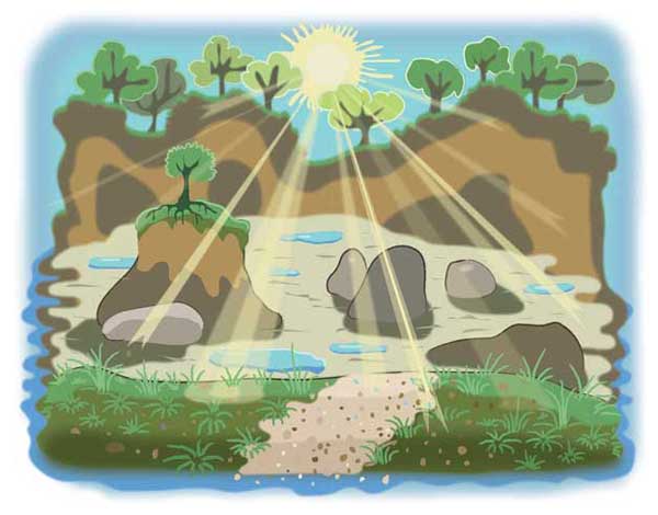 Малыш Ви удивлён – значит, острова не плавают на воде, как плоты и кораблики, а растут прямо из земли? И река течёт вокруг них? Теперь, когда дно открылось, это стало понятно.