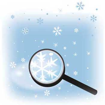 Он вытаскивает из кармана лупу, наводит её на снежинки. Снежинки под лупой такие большущие! У каждой лучики, на лучиках – иголки. И у каждой снежинки свой узор.