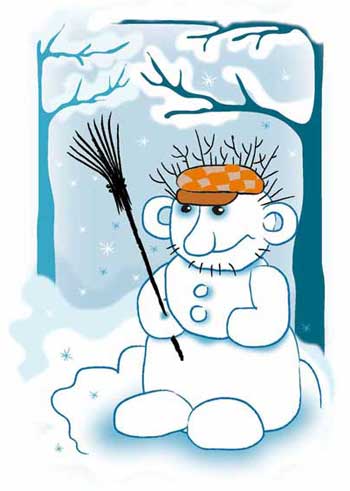 – Что это там у тебя за грабли внизу пристроены? – спрашивает дед, укрепляя на снежной голове снежный нос.