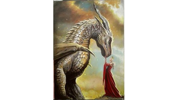 Вы не представляете! Я увидела дракона, он плескался самозабвенно, как маленький ребенок, будто первый раз увидел воду. Мне было не страшно, он не мог меня видеть, что означало – я смогу за ним понаблюдать. Это был большой золотистый дракон, в свете луны казалось, что он блестит. Никогда не видела и даже не слышала о золотых драконах. Вдруг он притих, остановился и развернулся, посмотрел в мою сторону, от пристального взгляда я замерла и перестала дышать. Он глядел прямо на меня, будто мог видеть, потом начал приближаться, а я не могла сдвинуться с места, посмотрела в его глаза – и в тот же миг все вокруг остановилось, замерцало, звуки стихли, и было слышно только мое сердце, оно билось очень быстро. Дракон все приближался и остановился только когда нас разделяли несколько шагов. Он смотрел на меня, затем принюхался и тоже замер, его глаза заблестели, как пламя. Я наконец очнулась, мне так хотелось к нему подойти, прикоснуться, но он сам подошёл ближе и обдал меня горячим воздухом, потом схватил одной лапой и взмыл в небо. Я даже не успела испугаться, как он уже опустился на берегу озера. Рядом нашла свое платье и оделась. Было холодно, и я решила, что надо идти домой, хватит на сегодня приключений. Направилась в сторону дома, отчего-то зная, что дракон пойдет со мной, не хотелось, чтобы он тут оставался. Так мы пришли к домику. Я поднялась на крыльцо и поняла, что в дом он не поместится, куда ему, он в 2, а то и в 3 раза больше. Дракон смотрел на меня с грустью, и я чувствовала, что он не хочет, чтобы я уходила, да и мне самой не хотелось, я не понимала, почему. Спустилась к нему, он лег на землю, опустил голову и закрыл глаза: выглядел при этом, как кот, просящий ласку. Подошла поближе и погладила его по морде, он был такой теплый и большой. Я села рядом и прижалась к нему. Не знаю, сколько я так сидела, но вскоре, пригревшись, уснула возле него.