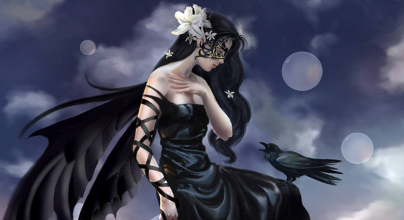 Вечером меня встретила Эми и сразу повела к себе в комнату, мы немного поговорили, и она меня убедила переодеться в ее платье. Оно было очень красивое, черное, длиной в пол, с открытыми плечиками, с лентами на правой руке и разрезом с правой стороны выше колена. Никогда не носила подобные платья, оно мне очень понравилось. Как я и предполагала, это не просто ужин, а банкет в честь того, что они заключили какое-то важное соглашение с драконами. Сама Эми была в платье изумрудного цвета с небольшим вырезом на спине, тоже в пол, красиво облегающее тело, подчеркивающее все достоинства девушки. Еще она дала мне черную маску в форме бабочки. Волосы оставили распушенными, только украсили цветком. Мне очень понравилось то, как я выгляжу. Сама она не надела маску, так как им с мужем, как хозяевам бала, еще предстоят деловые разговоры с драконами.