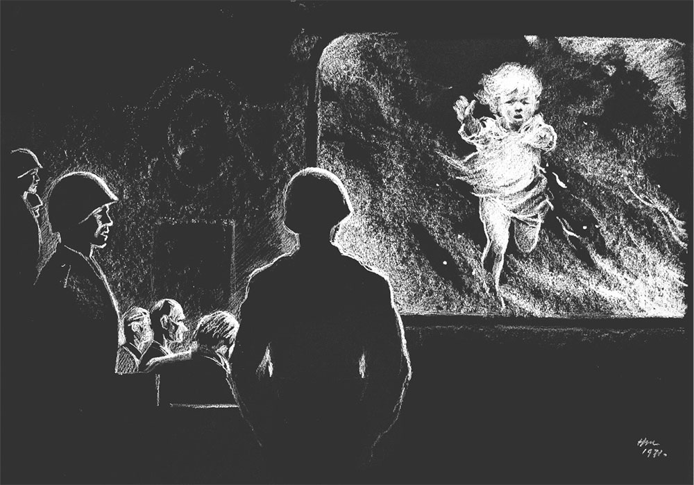 Жуков Н. Н. Рисунок «У здания трибунала (Нюрнберг, 1946 г.)»