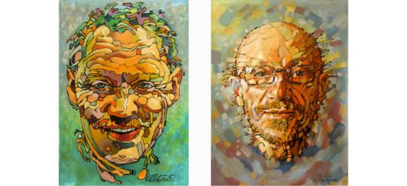 Так появилась серия портретов выдающихся людей в области искусства (музыки, поэзии, живописи). Работы (портреты), созданные в этот период (2008—2012 гг.) отличаются и технологически (они выполнены маслом на бумаге), и выразительными свойствами (преобладает стилизация под стиль арт нуво (модерн). В композиции также можно выделить общую схему: поясное изображение человека даётся крупным планом, а фоном выступают символы-цитаты, ассоциирующиеся с ним.