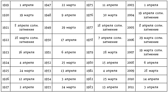 Совершается в 17-й день первого месяца лунно-солнечного года, который начинается 22 марта и продолжается по 21 апреля, вслед за весенним равноденствием с первым новолунием после начала солнечного года. В 2000 году начинается новый 90-летний цикл этого календаря с новолуния перед весенним равноденствием – 6 марта 2000 года. В 17-й день первого месяца этого года надо идти в храм, соприкоснуться с вечной жизнью, испить чашу очищения, причастия, благодати, бессмертия.