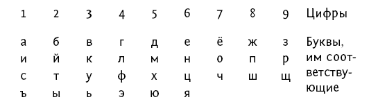 Русский алфавит в девятиарканной системе